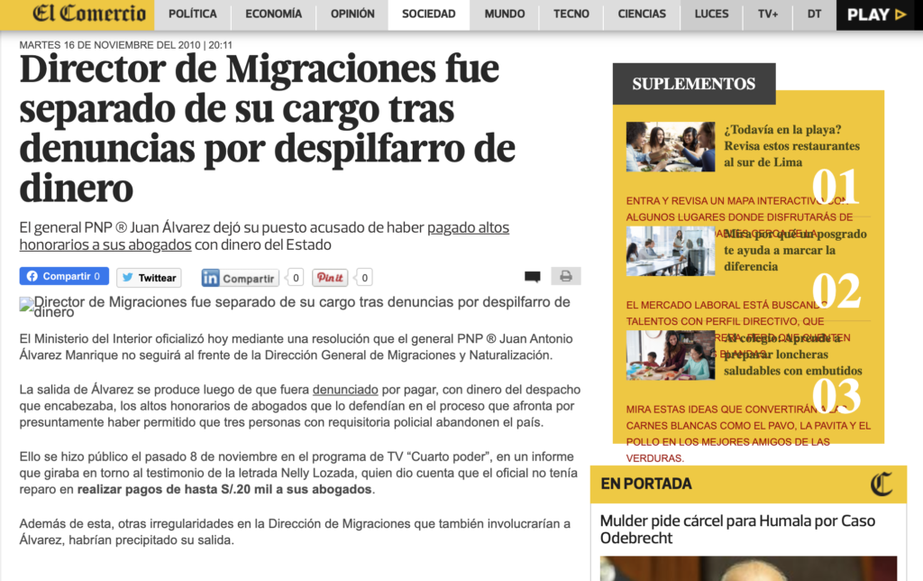 El 6 de mayo del 2022, un año y medio después de publicado el informe, EL FOCO, vía correo electrónico, recibió una carta con anexos de parte del señor Juan Álvarez Manrique. Cumplimos con reproducirla íntegramente: