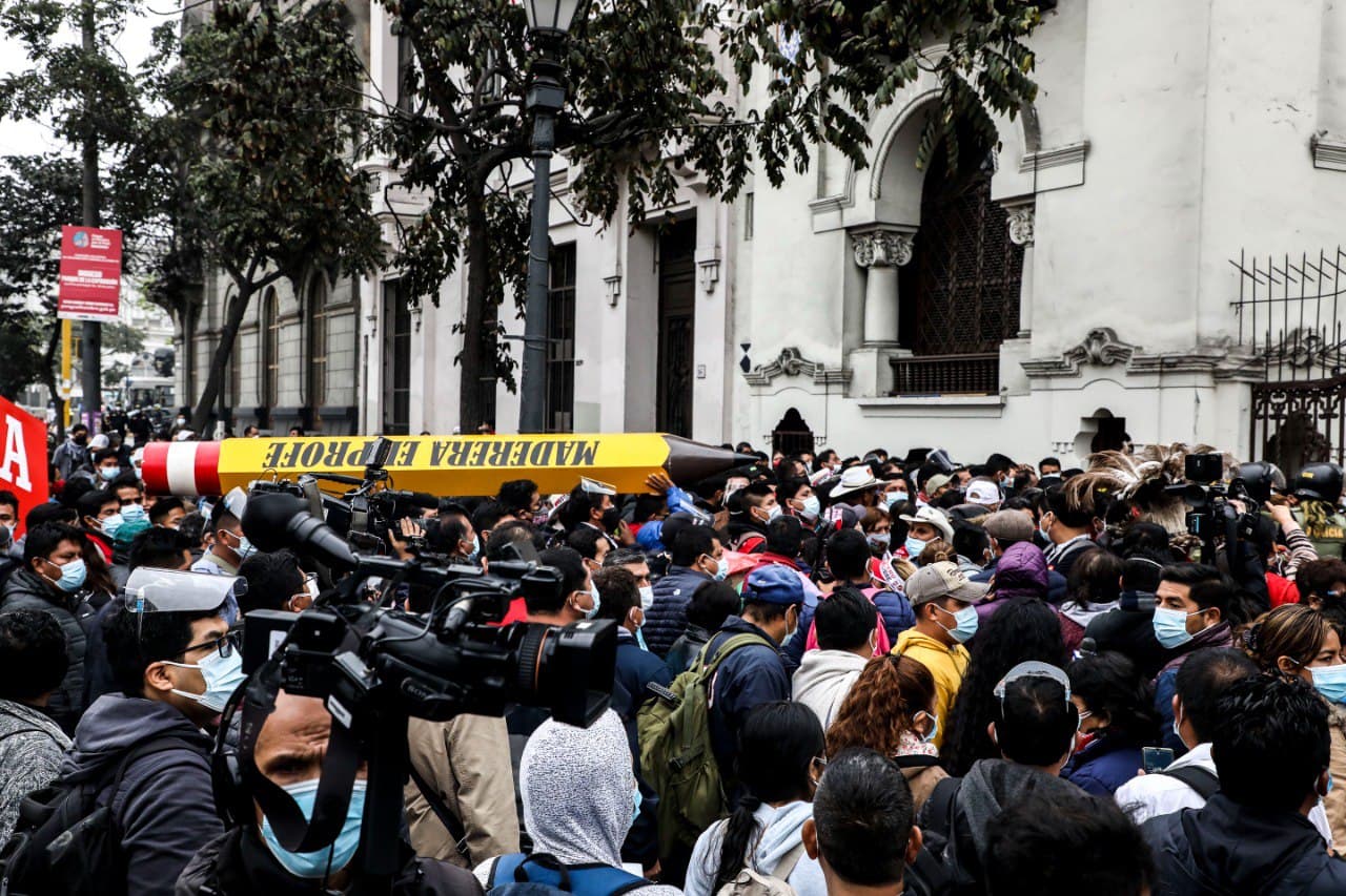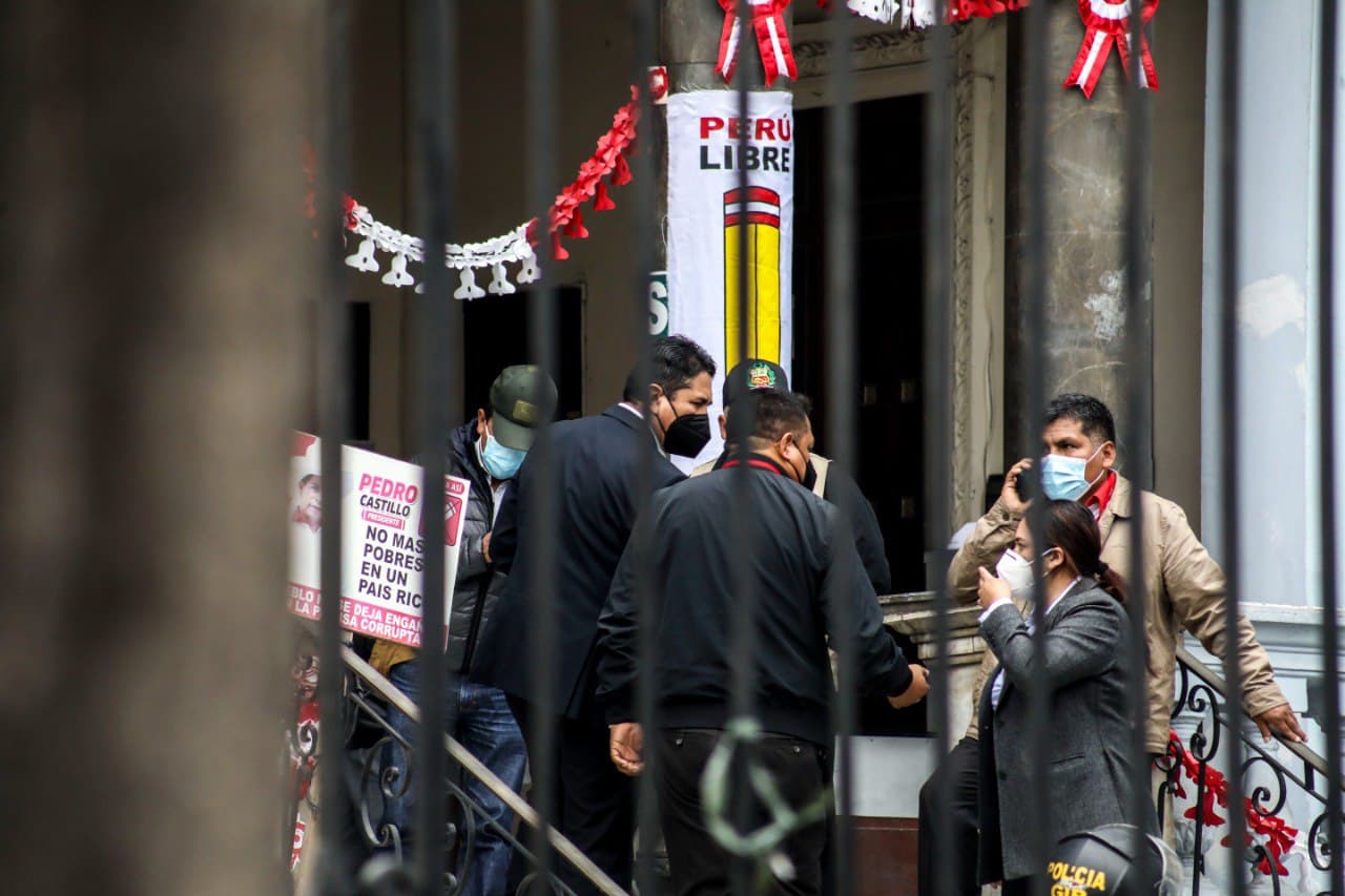 La Casa del Maestro, ubicada en la avenida Paseo Colón, en el centro de Lima, fue hoy sábado 24 de julio el escenario del primer Congreso Nacional de Perú Libre, partido que llevó a Pedro Castillo a ganar las elecciones presidenciales.