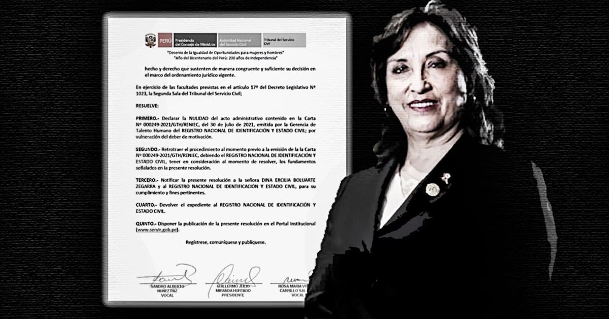 El Tribunal de Servicio Civil (Servir), entidad adscrita a la Presidencia del Consejo de Ministros, ordenó este viernes anular la decisión del Reniec que rechazó el pedido de la vicepresidenta y ministra de Inclusión Social, Dina Boluarte, para que se le otorgue una licencia sin goce de haber por cinco años como jefa de la oficina de Surco.