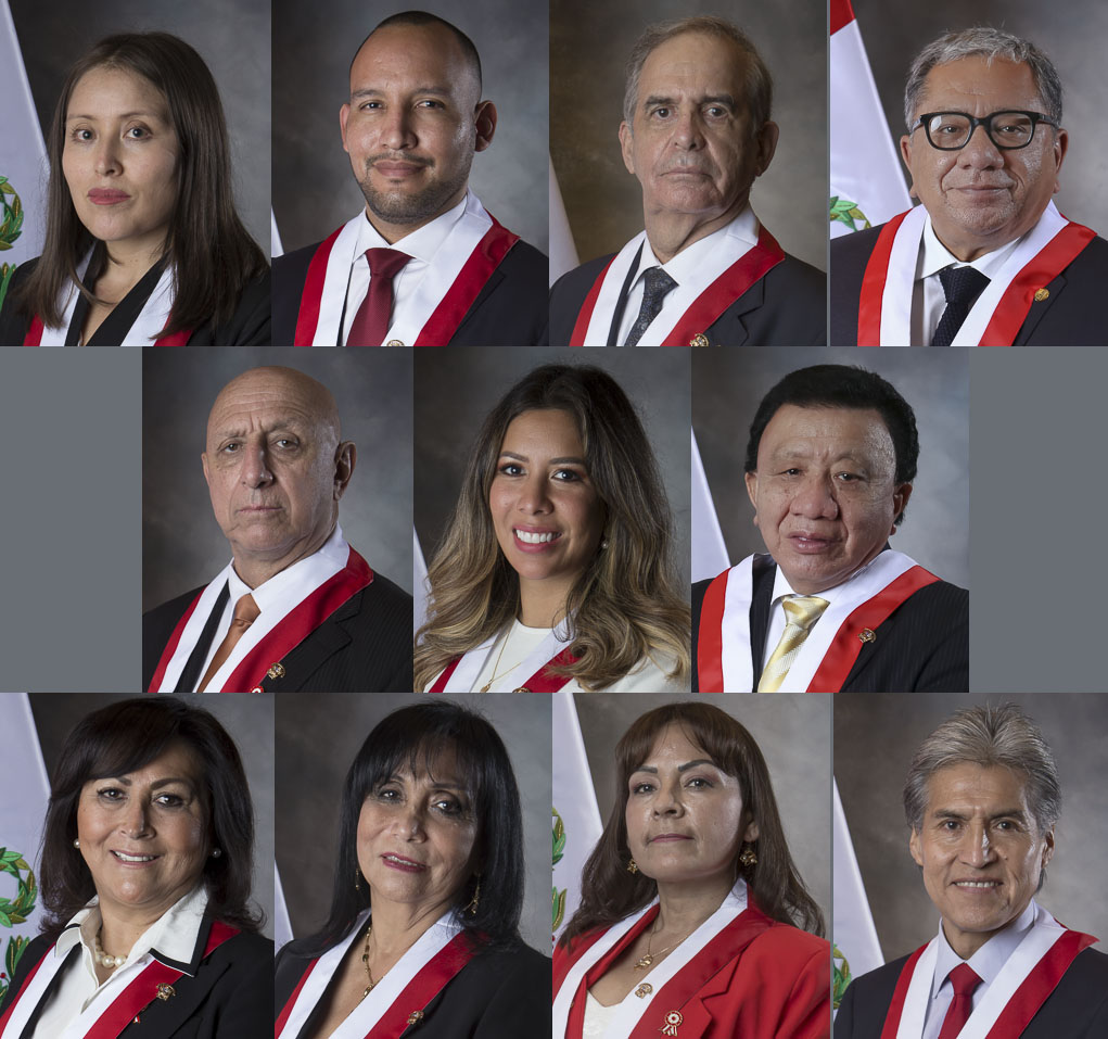 De izquierda a derecha y de arriba hacia abajo: Jorge Montoya (Renovación Popular), Gladys Echaíz (Alianza para el Progreso), Isabel Cortéz (Juntos por el Perú), Norma Yarrow (Avanza País), Patricia Juárez (Fuerza Popular), Ernesto Bustamante (Fuerza Popular), Martha Moyano (Fuerza Popular), Patricia Chirinos (Avanza País) y Hernando Guerra García (Fuerza Popular). (Composición: Fabiola Granda)
