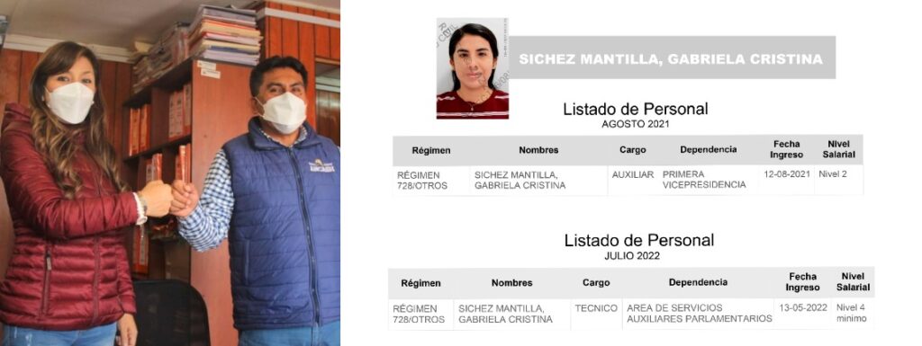 Como el caso de Gonzales Oré hay otros 16 aportantes de APP. Por ejemplo, en la Oficina de Participación Ciudadana, está laborando Sofia Loyola, quien también donó S/ 500 para la candidatura de APP. Rocío Quispe también fue aportante con S/200 y terminó siendo contratada en la Primera Vicepresidencia cuando Camones ostentaba dicho cargo. Loyola y Quispe ganan S/ 7124 y S/ 6092 mensuales, respectivamente.