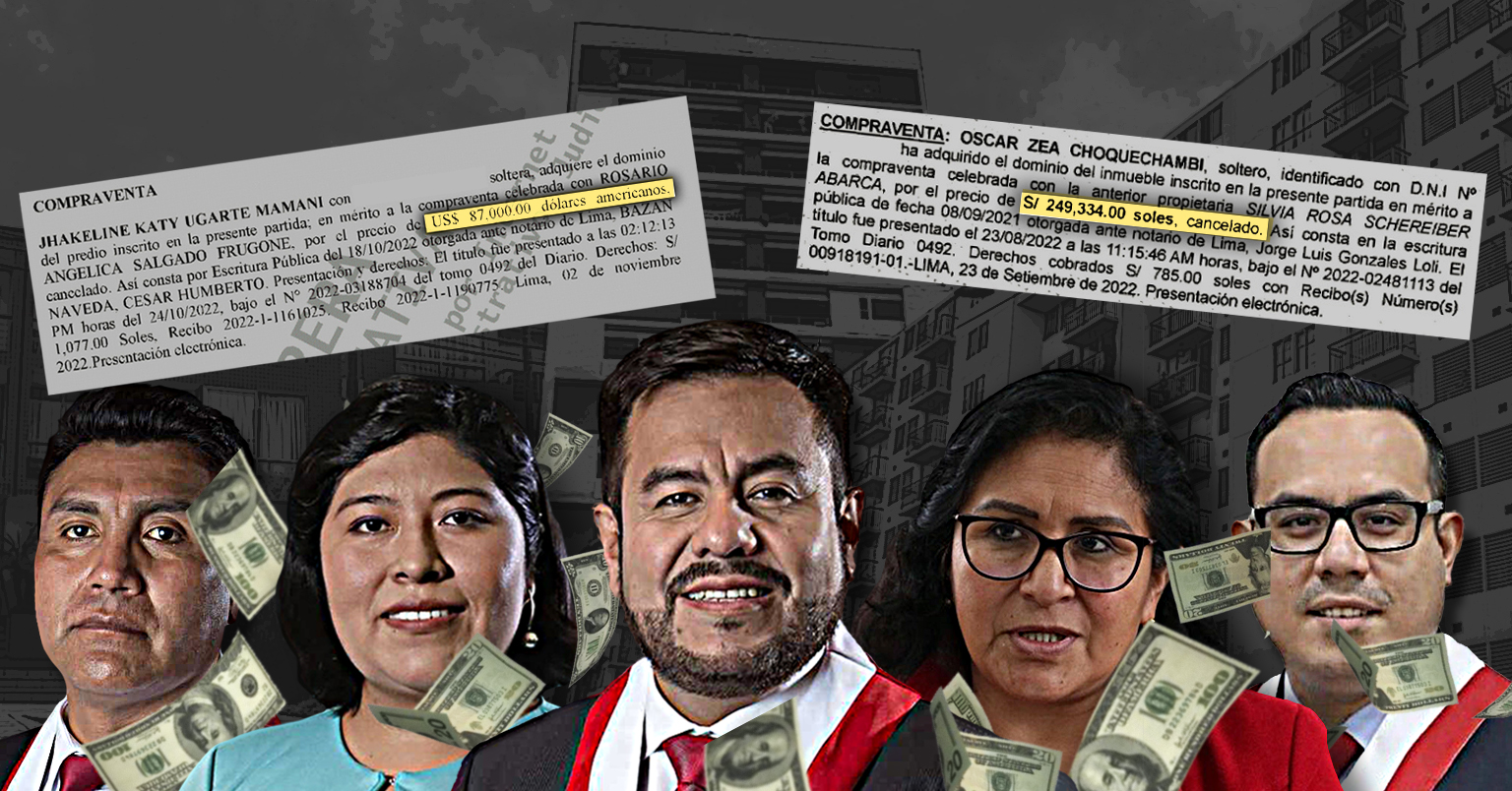 Carlos Zeballos, Katy Ugarte, Oscar Zea, Betssy Chávez y José Jerí adquirieron inmuebles desde que tienen un asiento en el Parlamento. Ugarte, Zea y Chávez compraron los inmuebles al contado. Zeballos adquirió un piso en La Molina y Jerí un penthouse en Jesús María.