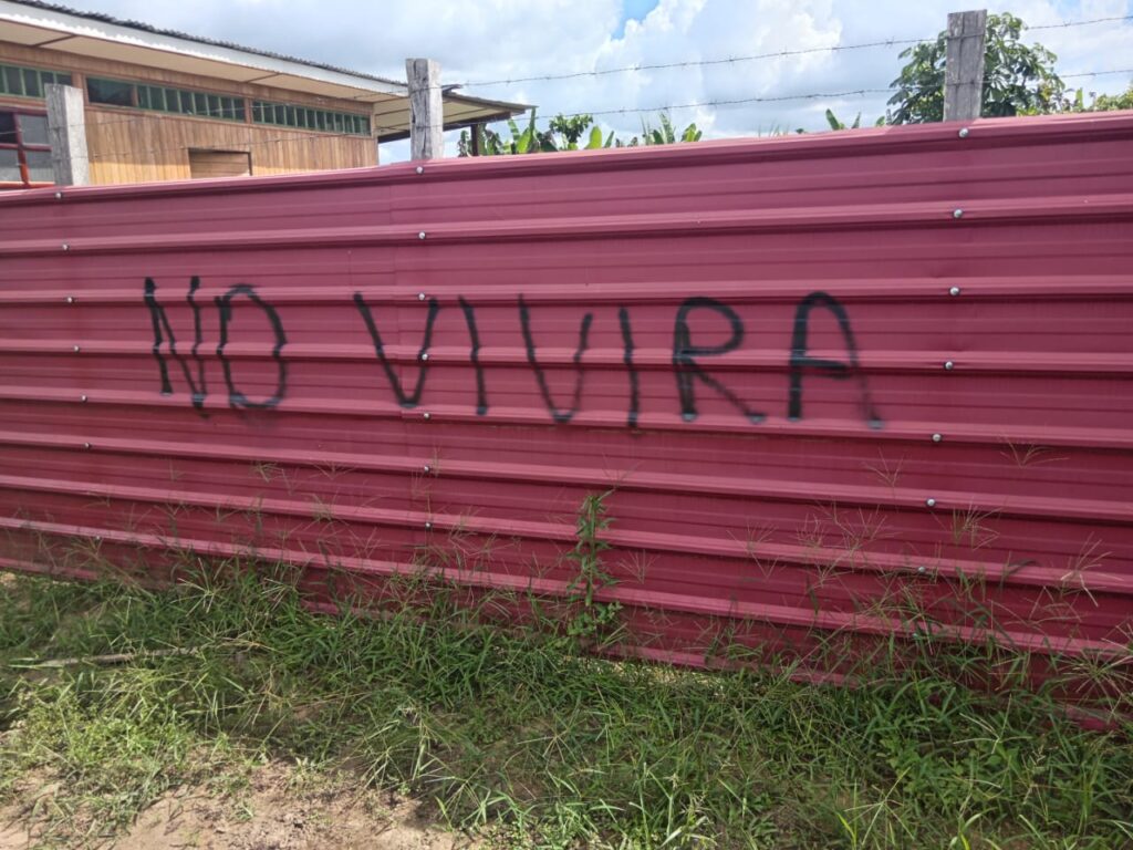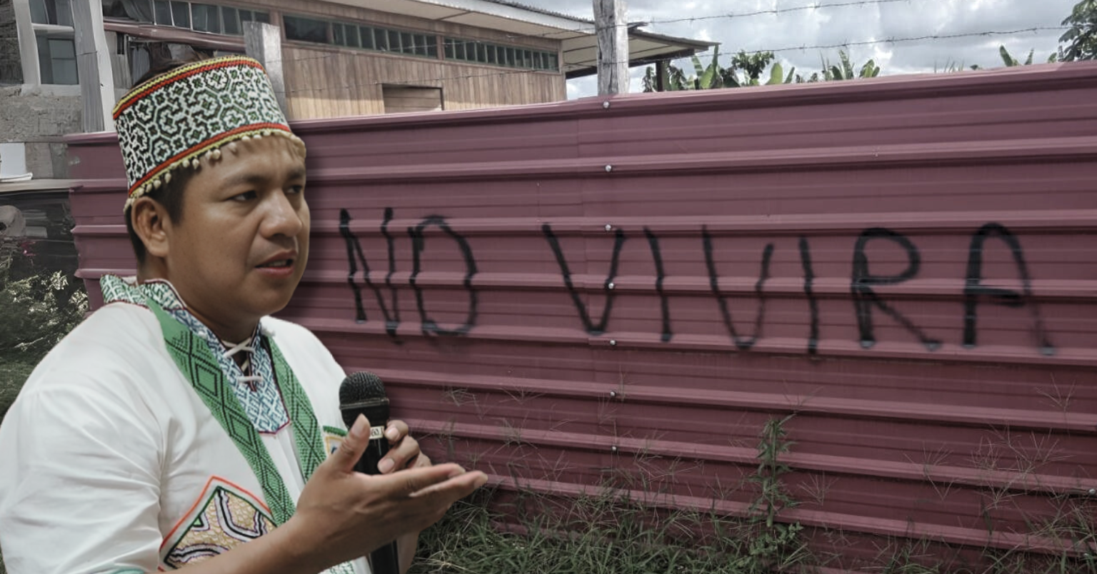 La noche del último miércoles, desconocidos irrumpieron la casa del apu Miguel Guimaraes, en la comunidad Flor de Ucayali, en Yarinacocha (región Ucayali), e inscribieron en la fachada “no vivirá”. La pinta es una amenaza para el apu, quien también es defensor ambiental.
