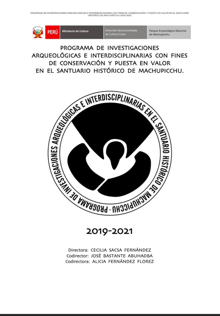 Primera página del plan de trabajo arqueológico y interdisciplinario en el Santuario de Machu Picchu. El plan inicio en el 2019 y ha sido extendido hasta este año.